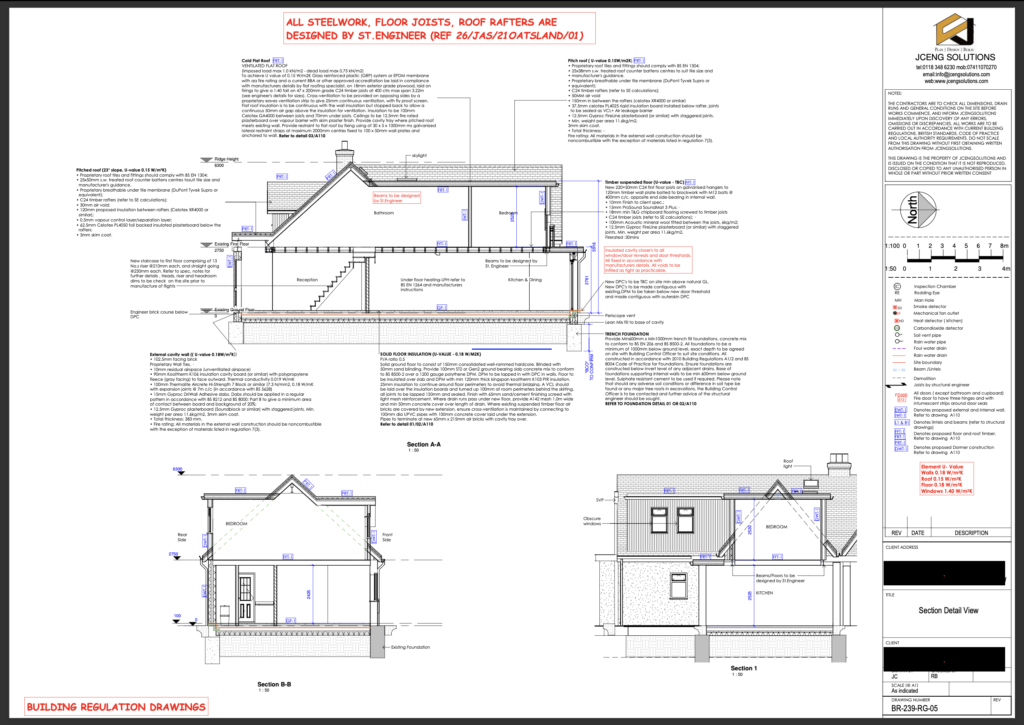 We take care of the technical side of your project, preparing detailed Building Regulations drawings and structural calculations to ensure everything complies with current UK Building Regulations and safety standards.